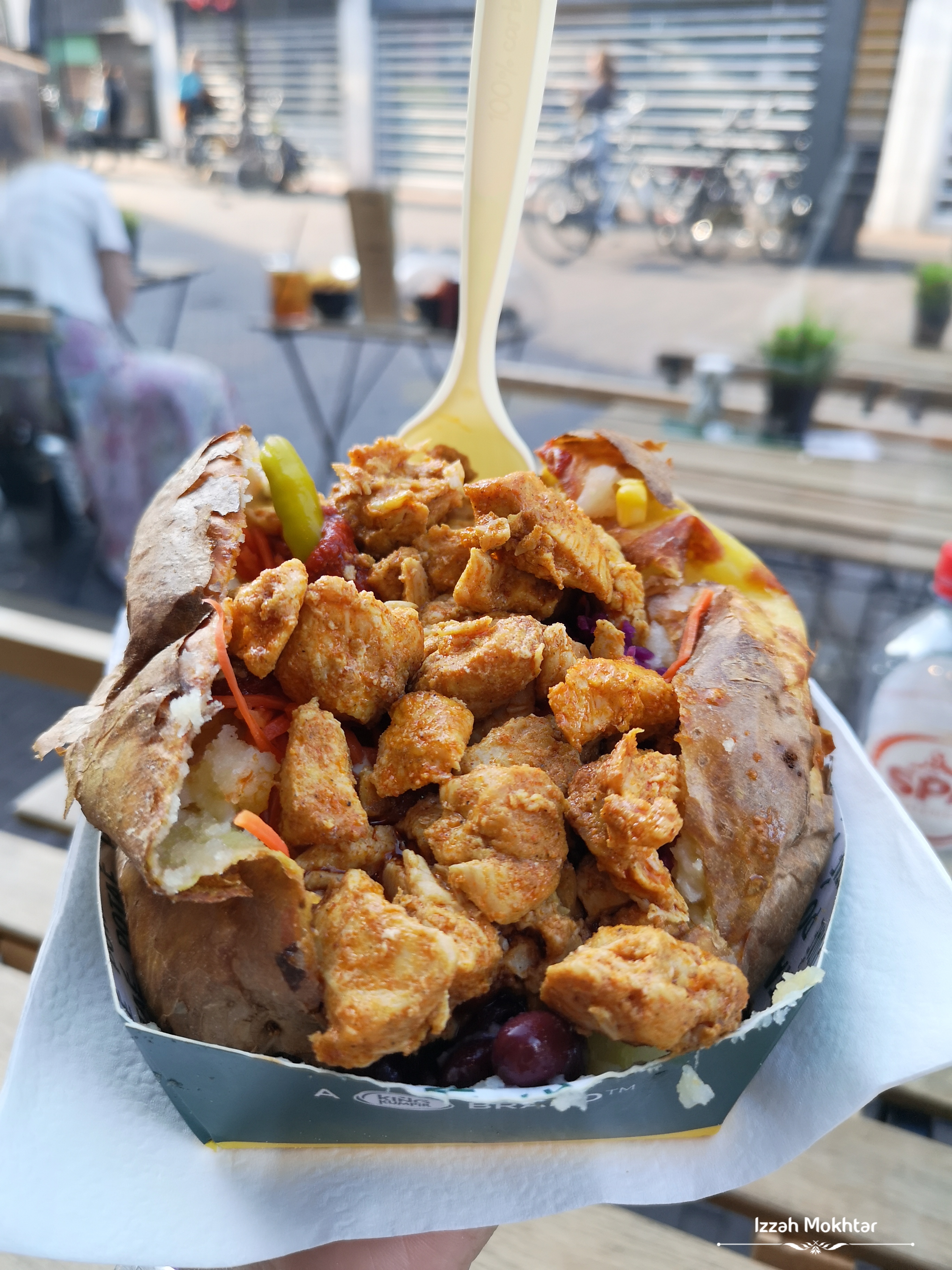 Kumpir ni roasted potato, mashed kan dengan butter, cheese, garam, olive oil, and topped with various toppings! Yang saya order ni ‘King Kumpir’, harga dia ā¬5.20. Ada kacang, sayur-sayur, ayam and pickles. Sooo sedappp! But sooo kenyang! Hahaha. Makan sampai tengah malam. š