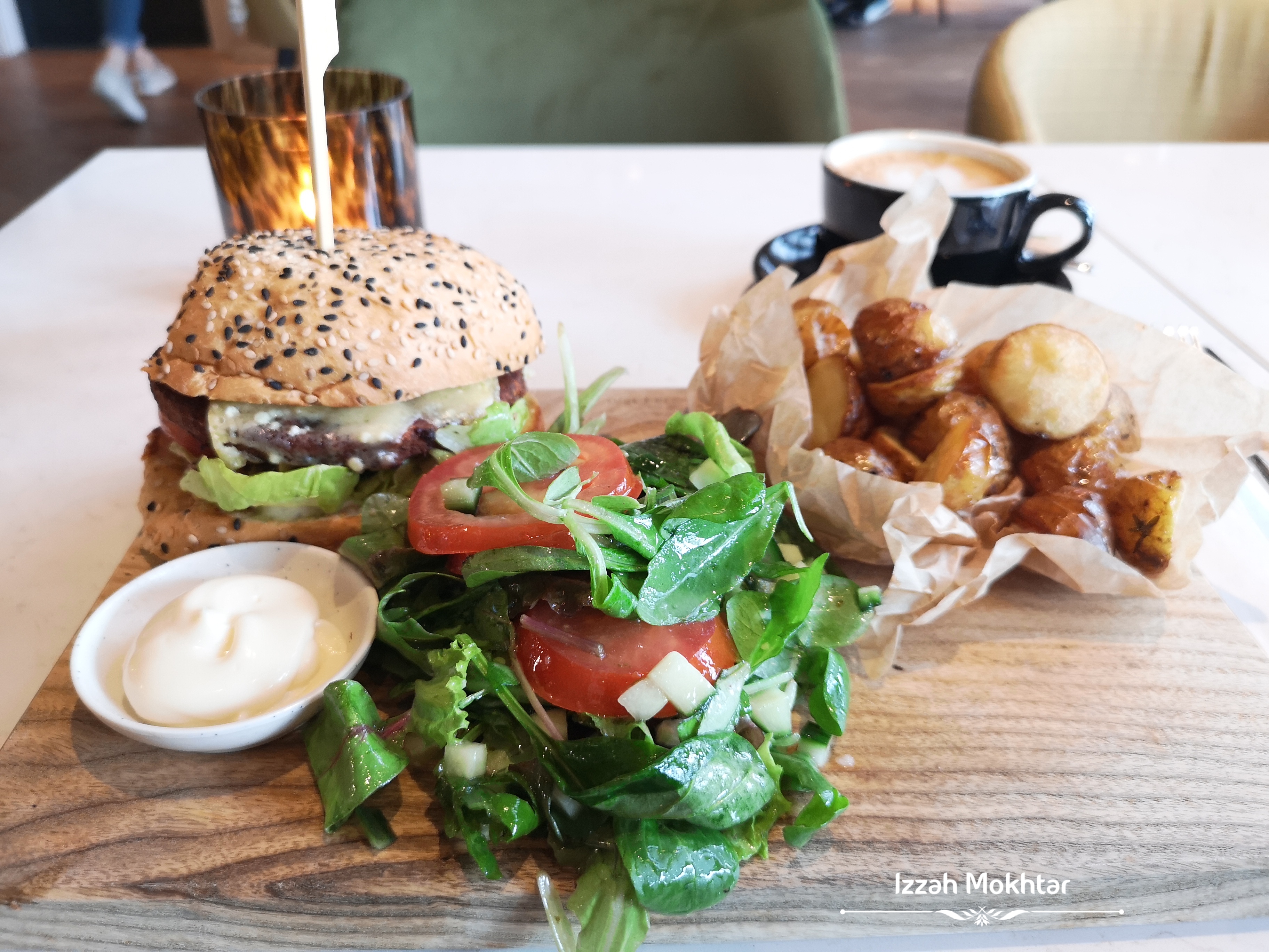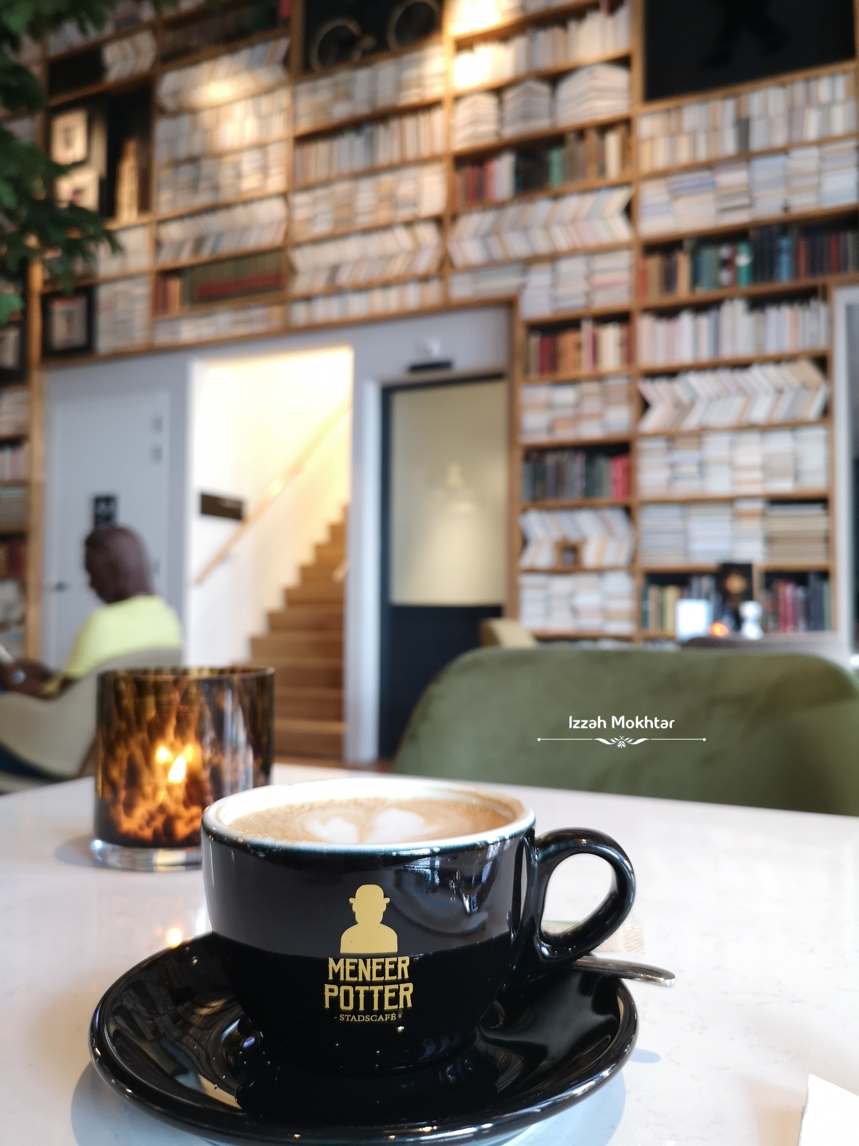 Dah puas pusing-pusing, lapar la pulak. Teringat semalam masa jalan-jalan sebelum gelap, ternampak satu cafe ni macam best. Nama dia ada potter-potter something, nampak ada buku-buku banyak dalam cafe tu. Search balik, nama dia Meneer Potter dan terus menuju ke situ. Order Vege Burger dengan cappucino. Sedappp burger dia. š