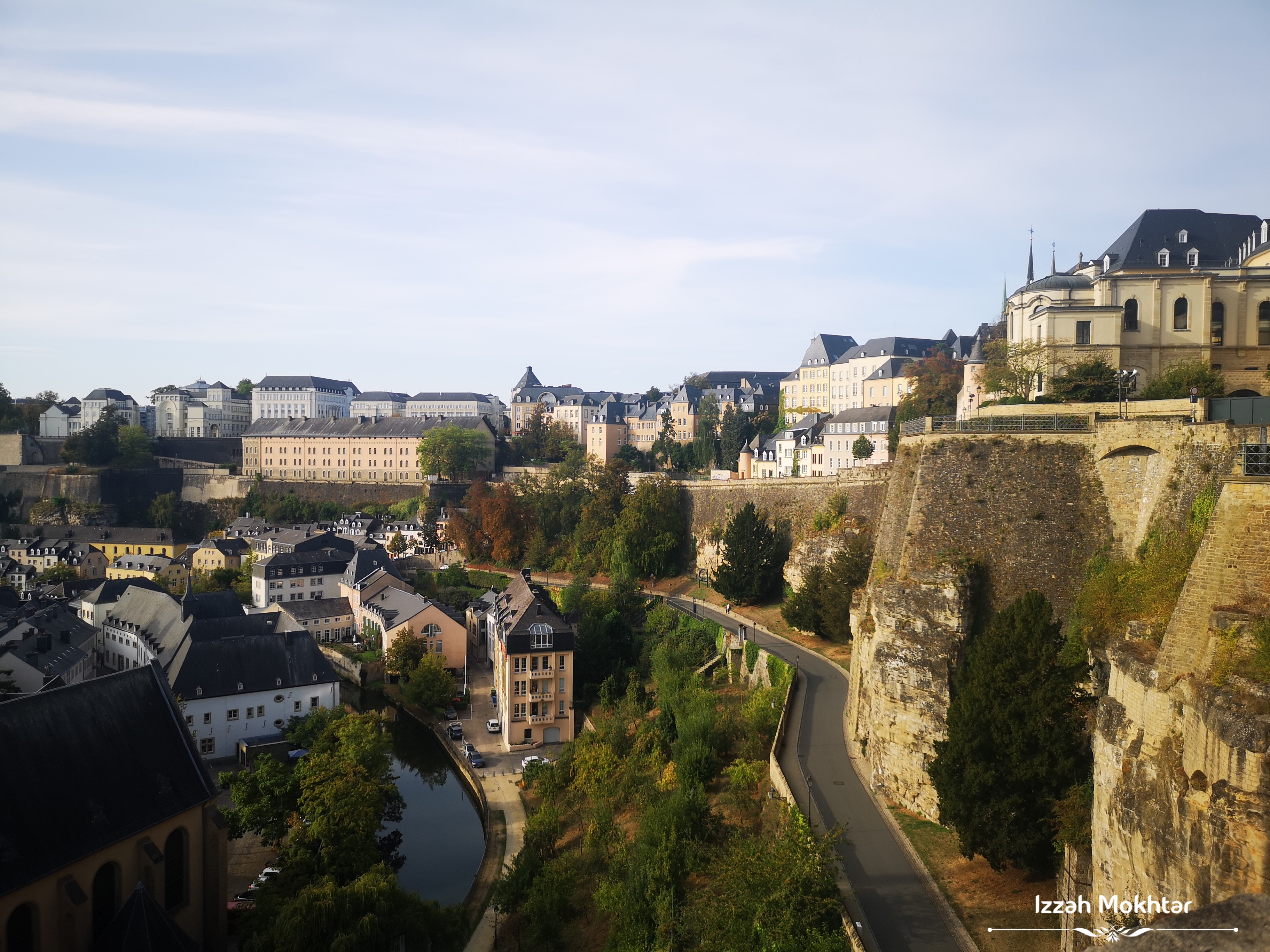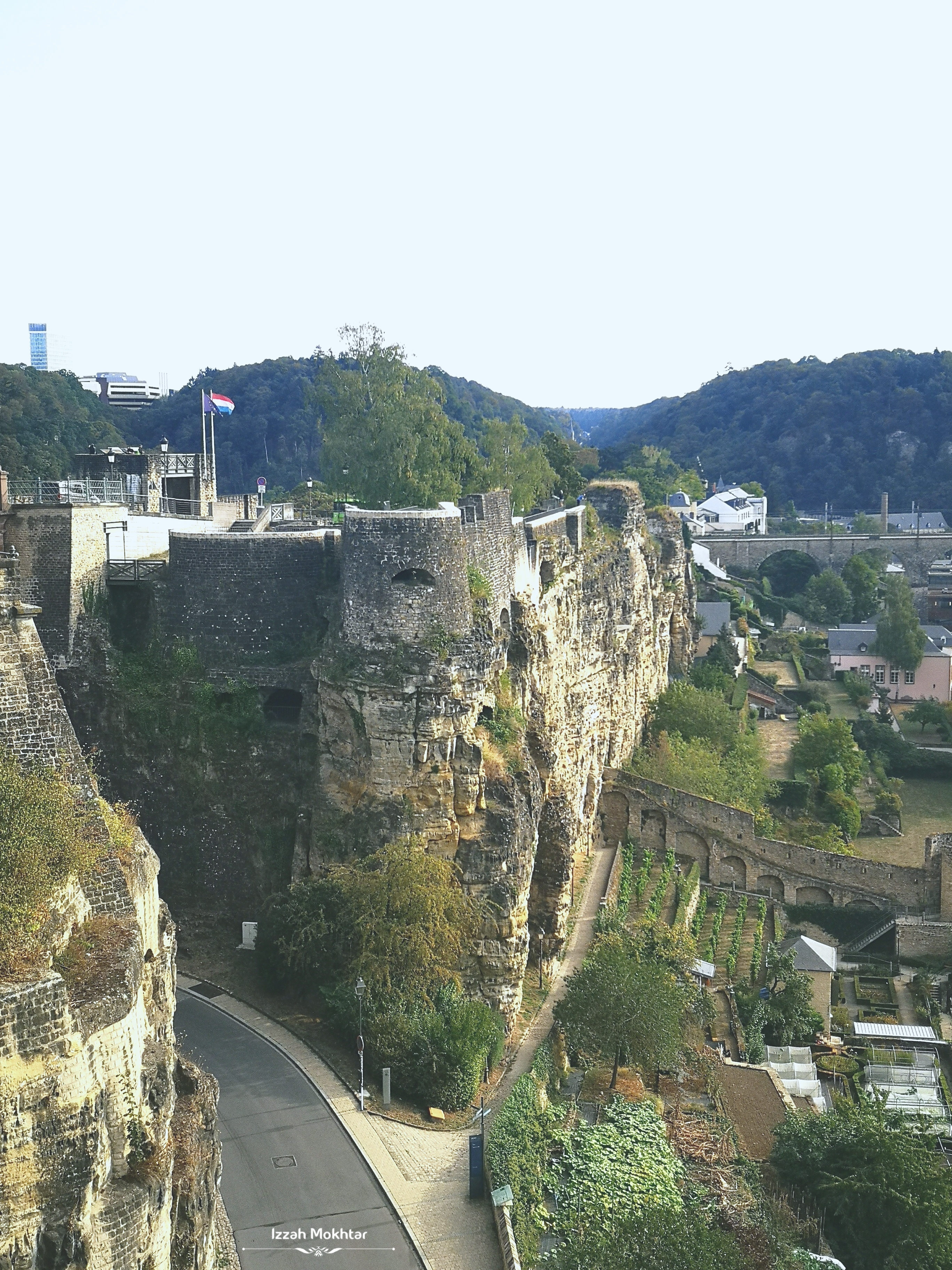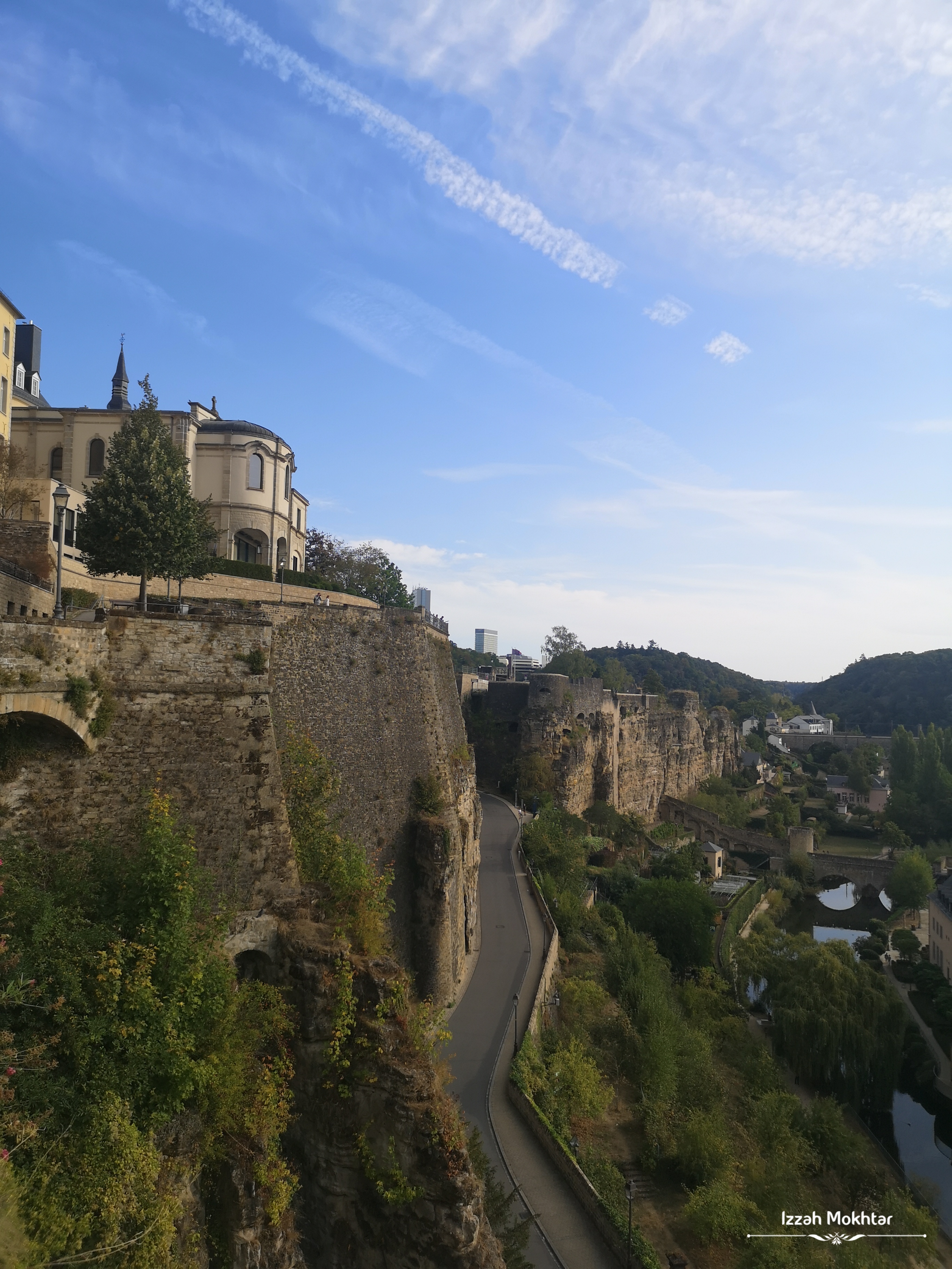 Chemin de la Corniche ni memang ada valid reason la digelar ‘the most beautiful balcony in Europe’. Setiap beberapa langkah, akan nampak sudut berbeza pemandangan dia, dan akan berhenti ambil gambar. Toleh ke belakang, nampak sudut yang lain pulak. Eh lawa betul! Dengan rumah-rumah di lereng kubu atas, jalanraya merentasi kubu bawah, perkampungan di kawasan Grund di bahagian bawah kubu, lepastu ada keretapi lalu, kapal terbang melintas. Leka betul tengok semua! Lepas tu ada banyak kerusi yang disediakan untuk menikmati pemandangan, lagi la syok! 😊