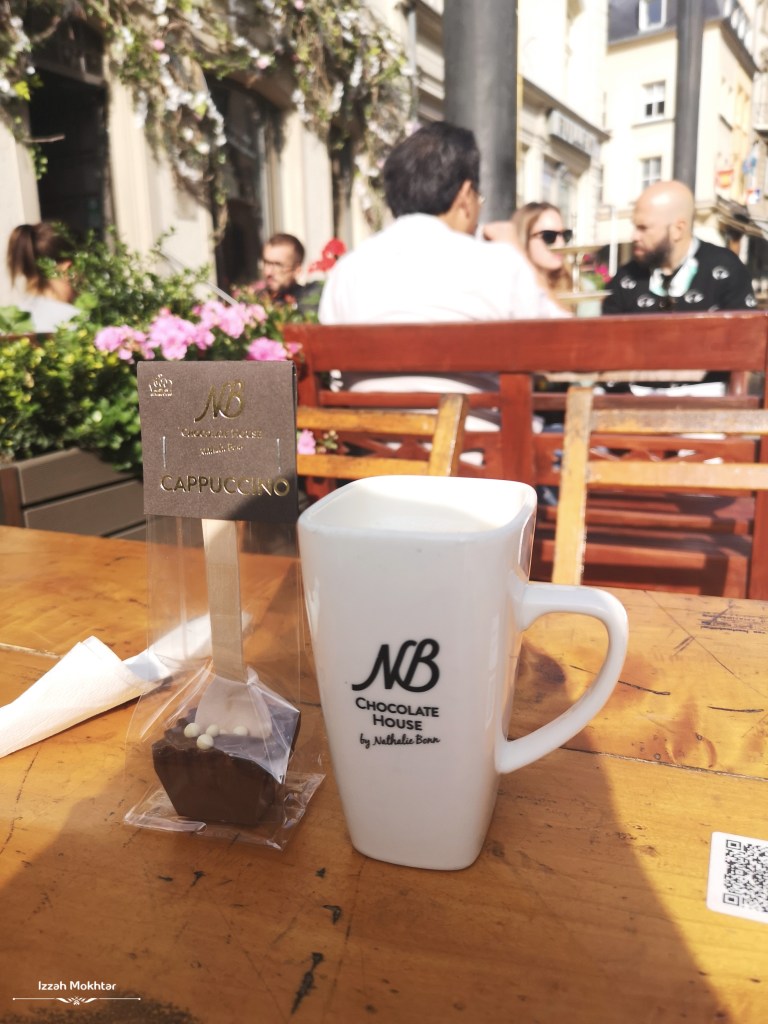 Esok pagi, lepas check-out, patah balik ke Old Town sebab nak minum hot chocolate dekat Chocolate House by Nathalie Bonn. Kedai ni betul-betul depan Grand Ducal Palace (tengok gambar atas-atas). Kedai ni punya signature dish adalah chocolate spoon, melted in hot milk! Ada macam-macam perisa chocolate spoon ni. Rambang mata nak pilih.