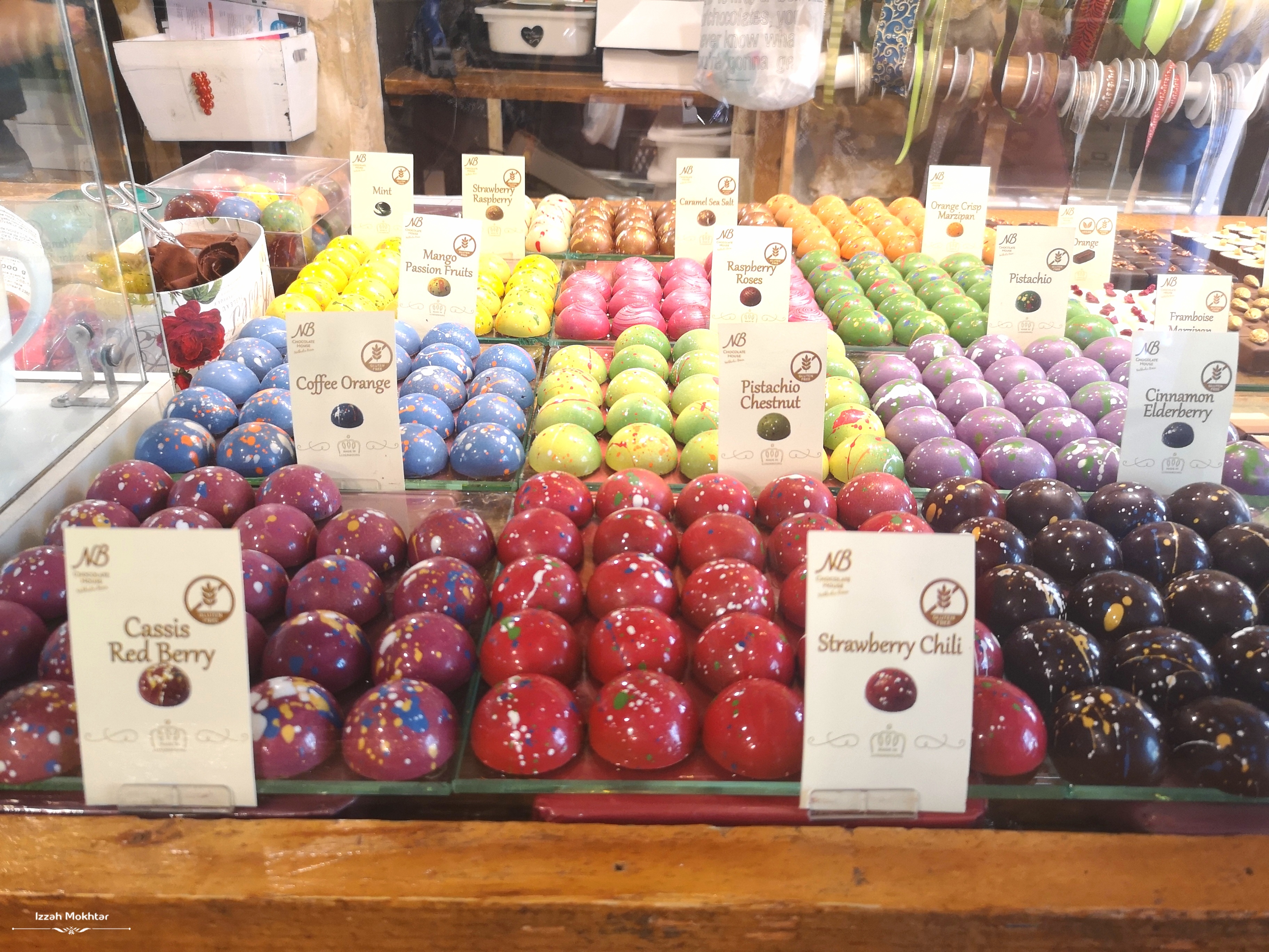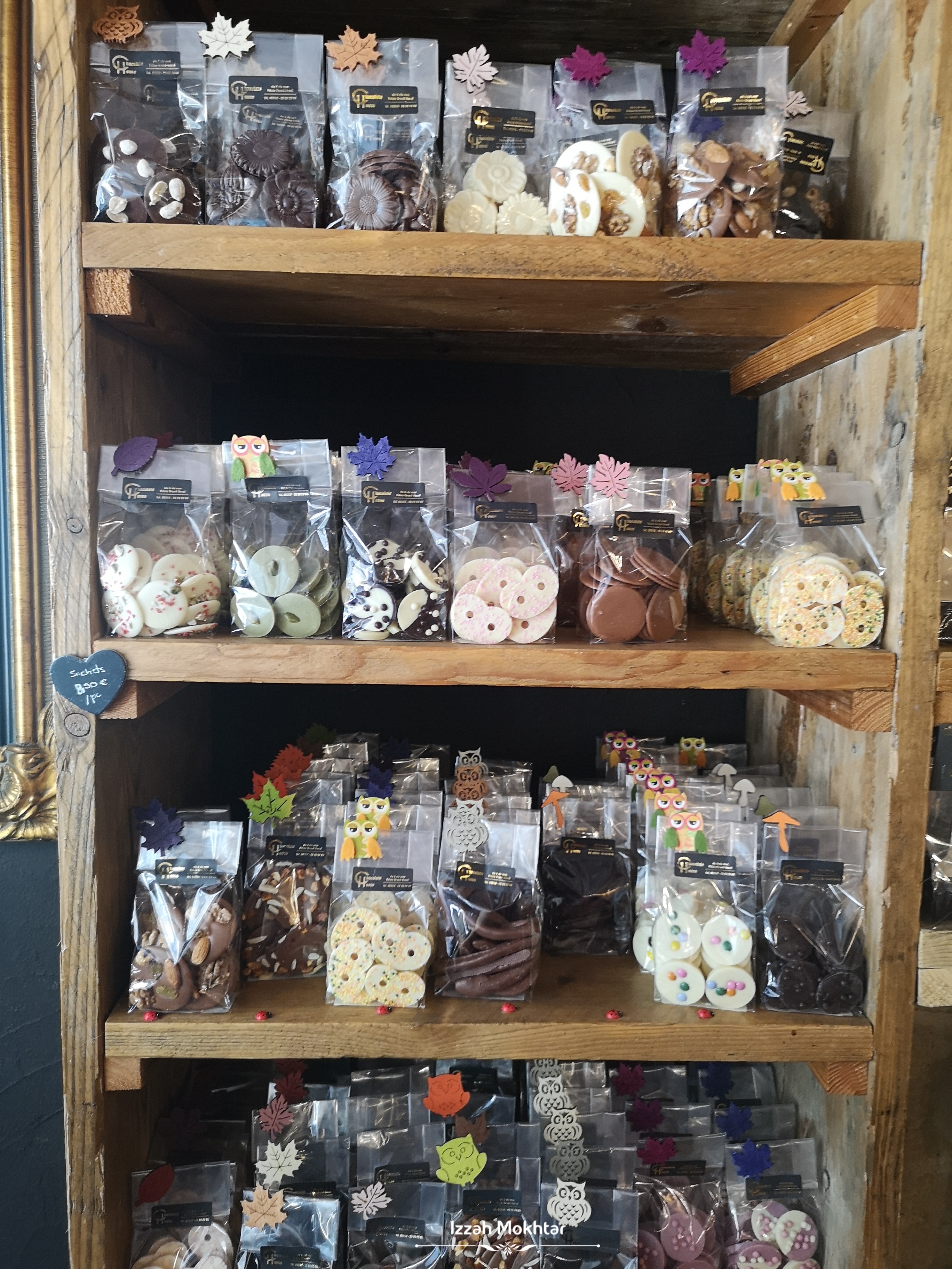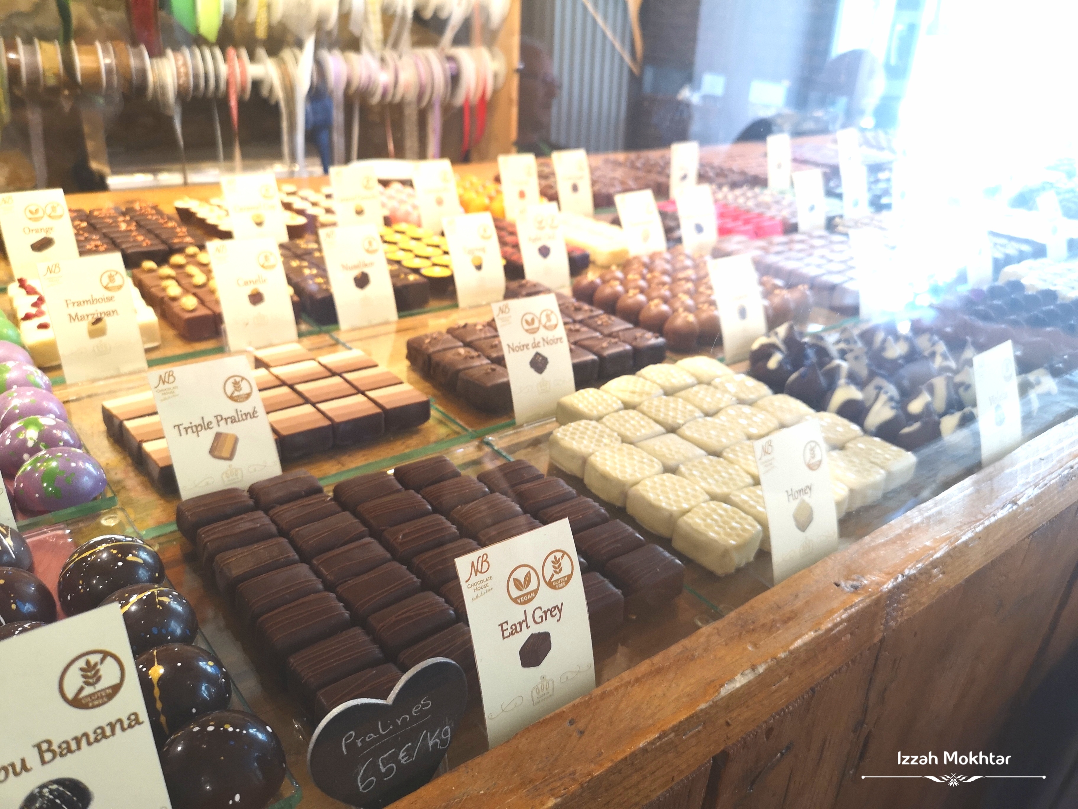 Masuk dalam kedai, nak bayar, laaagi rambang mata tengok semua chocolateeee…. dengan kek yang lawa-lawa.. Beli la satu bungkus chocolate ada walnut, badam dengan kismis. Sedapp! Rugi betul beli satu ja. Setiap chocolate dan kek ada disenaraikan ingredients. Boleh check dulu sebelum beli. Yang halal dan vegan pun ada. 😊