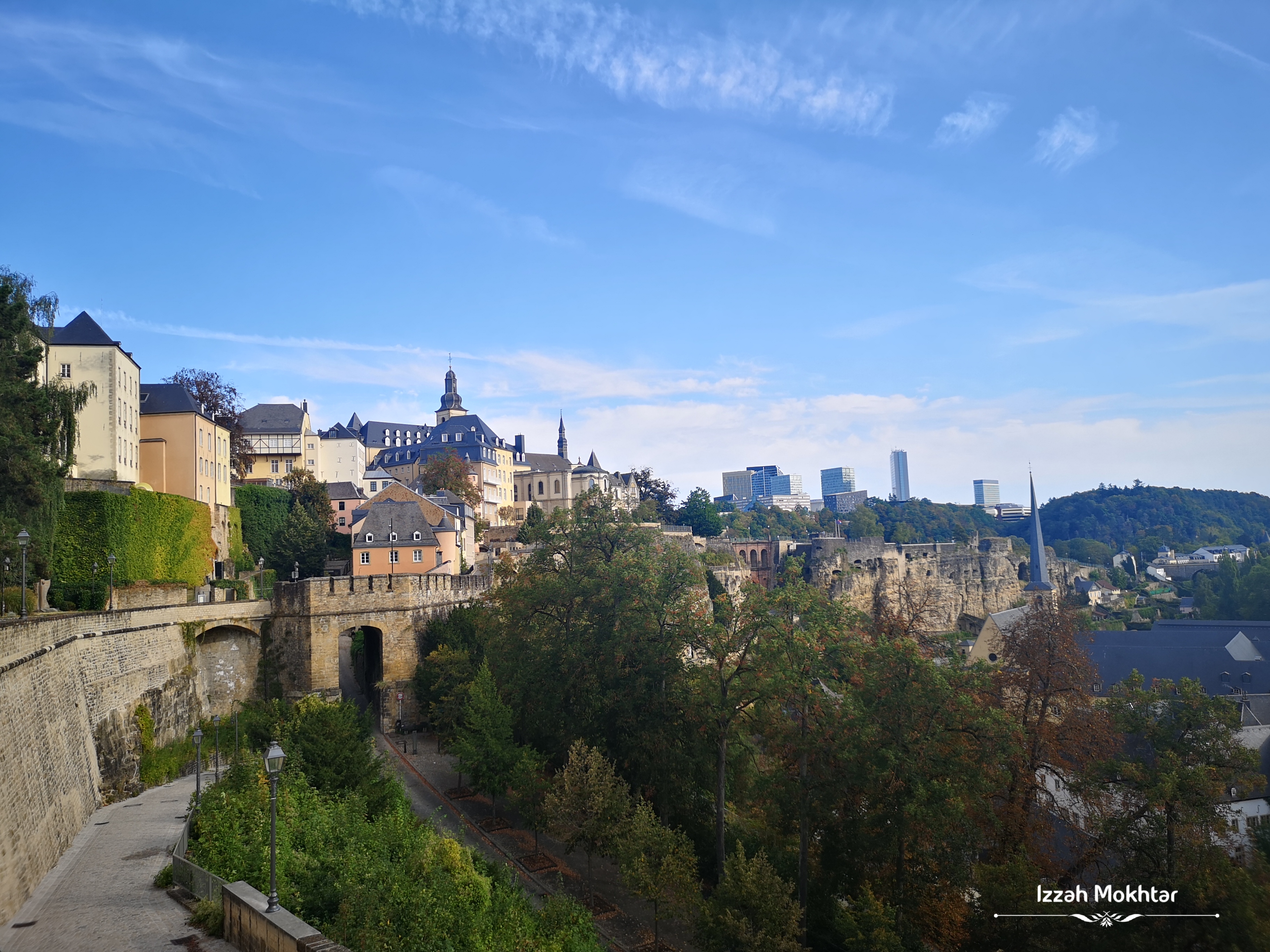 Sebelum masuk ke kawasan Chemin de la Corniche, akan nampak macam satu viewing point yang dulunya adalah menara kubu kota Luxembourg. Dekat sini boleh nampak European Quarter dengan lebih jelas nun di atas bukit di seberang sana.