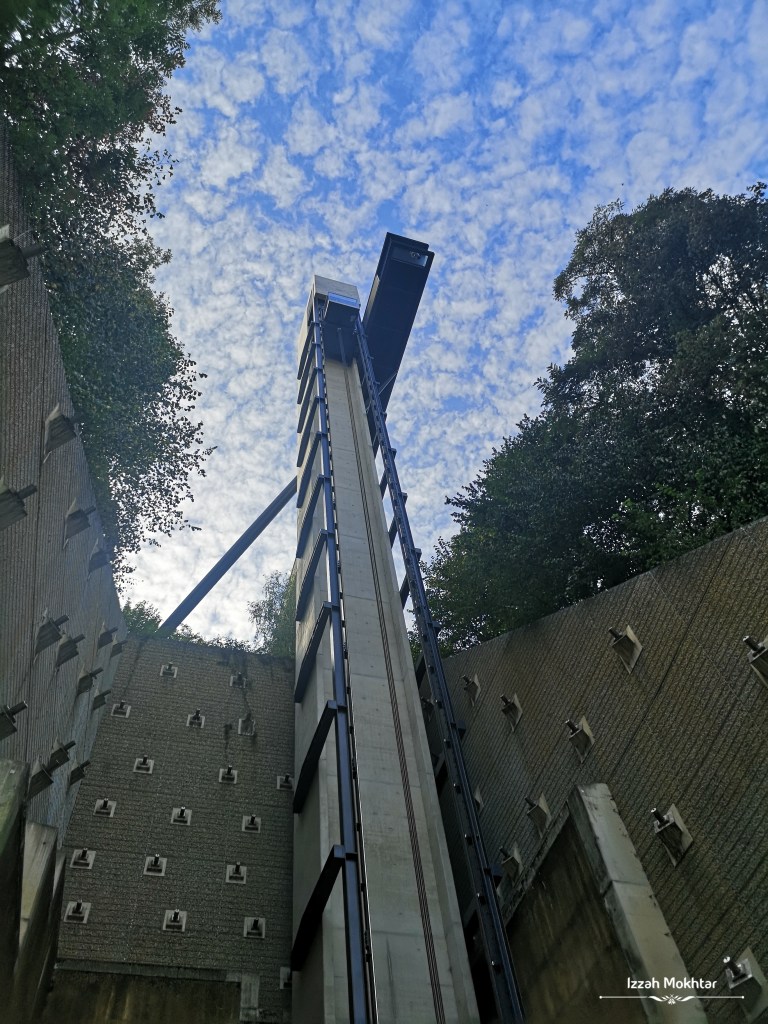 Lift ni free ja, boleh naik turun ikut suka. Tak payah pakai tiket pun, dibuka setiap hari dari 6 pagi sampai 1 pagi, tutup tengah malam. Mula-mula ingatkan dia macam observation deck. Rupanya, ni adalah alternative transportation yang menghubungkan bahagian bawah dan bahagian atas bandar Luxembourg City. Patut la tengok orang bawak masuk basikal dalam lift ni. Dok cakap, eh awat yang bawak basikal masuk lift ni?? Rupanya, dekat atas, ada taman, Pescatore Park, dan boleh terus ke City Center dari atas lift ni. Ni view dari atas lift, tak lah tinggi sangat pun, 71m ja.